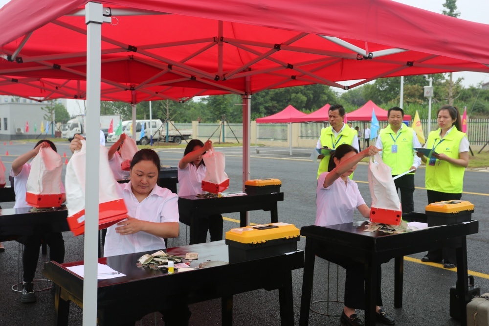 點鈔技能比武現(xiàn)場,6名參賽者手指翻飛,雖然現(xiàn)場觀眾眾多,但絲毫未影響其點鈔速度,她們憑借專注的精神和嫻熟的技能,充分展現(xiàn)著“老司機”的實力。最終,市公交集團營業(yè)中心全云以4分02秒的速度和100%的正確率斬獲冠軍。