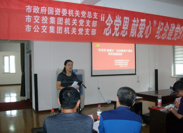 7月3日,為紀(jì)念中國共產(chǎn)黨建黨97周年,市政府國資委機(jī)關(guān)黨總支、市交投集團(tuán)機(jī)關(guān)黨支部、市公交集團(tuán)機(jī)關(guān)黨支部以“念黨恩、獻(xiàn)愛心”為主題,組織黨員們一同走進(jìn)市圓夢殘疾人庇護(hù)工場,開展7月份黨員主題活動日活動。