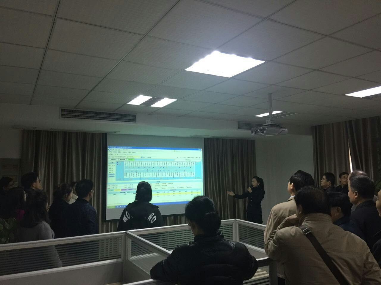 指揮調(diào)度中心技術(shù)人員講解介紹智能調(diào)度系統(tǒng)的功能,對(duì)智能調(diào)度系統(tǒng)及智能公交手機(jī)APP進(jìn)行了解。