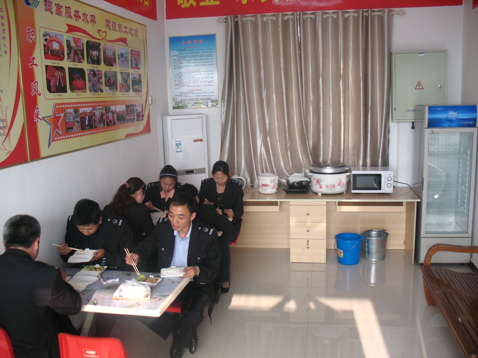 為了給駕駛員創(chuàng)造良好的工作生活環(huán)境,公司出資購買了保鮮柜、微波爐、開水壺、桌椅、空調(diào)等日常生活設(shè)施,使駕駛員能吃上熱飯,喝上熱茶,盡最大努力幫助、呵護(hù)一線員工,真正的為他們帶去一絲關(guān)懷和溫暖。為方便市民乘車,公司還要求所有調(diào)度室、站務(wù)室免費(fèi)對(duì)乘客開放,為市民提供咨詢服務(wù),解決乘客飲水難、入廁難等便民之需。